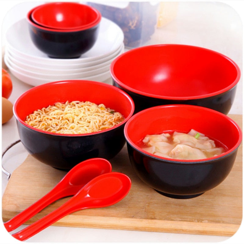 Japanese Style Melamine Imitation Porcelain Bowl Tableware Kitchen Soup Noodle Rice Bowl 8 inch Big Ramen Bowl Spoon Anti Drop